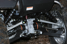 Auch die ist geringfügig überarbeitet worden. Hinten wurden zwei festere Federn und Dämpfer verwendet. Bei Kurvenfahrten taucht die Rincon damit weniger tief und so besser kontrollierbarer ab. Bei einer Beladung mit maximal 60 kg hinten und 30 kg vorne bleibt immer noch ein etwas schwammiges Gefühl beim Fahren. Dagegen hat man den fühlbaren Komfort bei den beiden vorderen Dämpfern noch verbessert. Bei vier Meter Sprüngen schlagen die dann allerdings im Gegensatz zu den beiden Hinteren durch. Auf die Möglichkeit einer Verstellung der Vorspannung muss man auch beim neuen Rincon Modell verzichten. Wer die 680er durch ihre gestiegene Motorpower noch härter beim sportiven Querfeldein-Einsatz einsetzen möchte – und hier lässt sie sich für ein ATV hervorragend einsetzen - kommt um stärkere Federn oder noch besser um Dämpfer mit Ausgleichbehältern nicht herum.